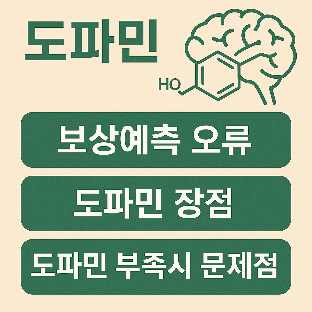도파민은 뇌에서 분비되는 신경전달물질로, 보상, 동기부여, 집중력에 관여합니다. '보상예측 오류'는 기대보다 큰 보상이 도파민 분비를 폭발시키는 현상으로, 중독 형성의 핵심 원인입니다. 도파민은 삶의 활력을 주지만, 부족하면 무기력, 우울, 집중력 저하 등을 초래할 수 있습니다.왜 도파민이 중요한가요?